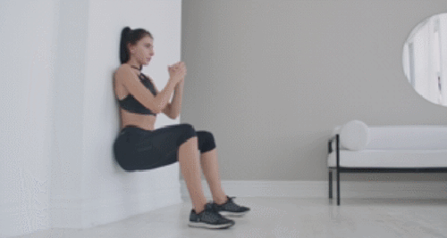 - 그리고 등을 벽에 기대고, 손을 가슴 앞에서 잡습니다.