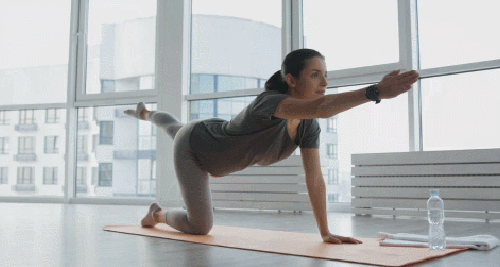 - 그리고 오른팔을 앞으로 뻗으면서 왼발을 뒤로 뻗어줍니다.