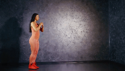 다리를 넓게 벌리고 바닥에 서서 스쿼트 동작을 진행합니다. 스쿼트 동작을 2회 진행 후, 일어서면서 점프 동작으로 연결하세요. 다시 착지하면서 스쿼트 동작으로 연결합니다. 1분 동안 반복하세요.