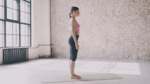 매트에 서서 다리를 모아줍니다. 그리고 오른쪽 다리를 들고, 무릎을 구부리세요. 그런 다음 발바닥을 왼쪽 허벅지 부분에 가져갑니다. 손은 가슴 앞에서 모아서 붙이세요. 자세를 유지하면서 호흡합니다. 30초 진행 후, 다리를 바꿔서 30초 반복합니다.