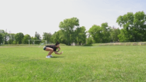 상체를 앞으로 숙이면서 손으로 바닥을 짚으세요. 그리고 손바닥을 앞으로 움직이면서 플랭크 자세를 만들고, 팔굽혀펴기를 1회 진행합니다. 그런 다음 손을 발목으로 당기고, 상체를 일으키면서 점프 동작을 추가합니다. 1분간 반복하세요.