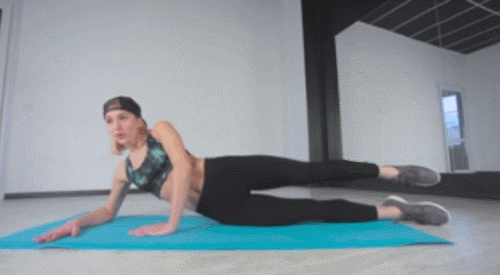 매트에 네발기기 자세로 엎드리세요. 팔꿈치를 펴고, 시선은 바닥을 응시합니다. 그리고 왼쪽 다리를 뒤로 뻗어줍니다. 무릎을 완전히 편 상태에서 다리를 들었다가 내립니다. 30초 운동 후, 오른쪽 다리로 30초 반복하세요.