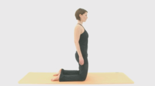 매트에 무릎을 대고 앉은 후, 상체를 일으킵니다. 그리고 상체를 뒤로 젖히면서 몸을 구부리고, 손으로 발꿈치나 발목을 잡으세요. 낙타 자세를 만들고, 호흡을 이어갑니다. 1분 동안 진행하세요.