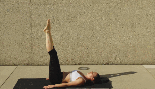 매트에 누워서 손을 양옆으로 펼칩니다. 그리고 다리를 공중으로 들고, 무릎을 90도 각도로 구부리세요. 그런 다음 다리를 왼쪽으로 넘겼다가 돌아오고, 오른쪽으로 넘겨주세요. 1분 동안 진행합니다.