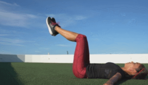 매트에 누워서 다리를 바닥과 90도 각도로 들어주세요. 그리고 다리를 공중으로 들면서 등을 최대한 바닥에서 떨어뜨립니다. 복부의 힘으로 천천히 반복하세요. 1분 동안 운동합니다.