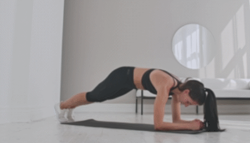 매트에 팔뚝으로 지탱하고, 몸을 엎드려서 팔꿈치 플랭크 자세를 만드세요. 그리고 왼쪽 무릎을 크로스 방향으로 당겼다가 되돌리고, 오른쪽 무릎을 크로스 방향으로 당겨줍니다. 1분 동안 반복하세요.