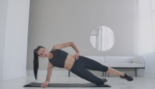 오른쪽 팔뚝을 대고 옆으로 누워서 준비하세요. 그리고 왼손은 옆구리에 가져갑니다. 그런 다음 왼쪽 다리를 들었다가 내리는 사이드 레그레이즈 동작을 30초 진행합니다. 이번에는 반대로 눕고, 오른쪽 다리를 들면서 30초 반복하세요.
