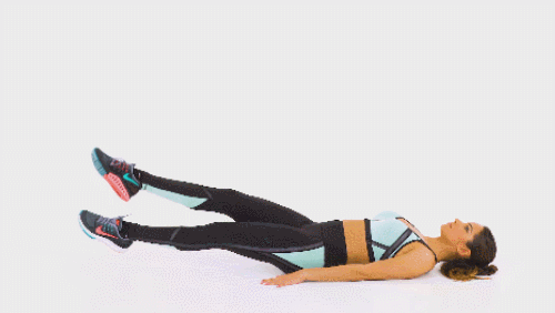 매트에 등을 대고 누운 상태에서 다리를 공중으로 살짝 띄웁니다. 그리고 다리를 벌렸다가 오므리면서 다리를 교차하세요. 다시 다리를 벌렸다가 오므리면서 반대 방향으로 교차합니다. 복부에 힘을 주면서 1분 동안 운동하세요.