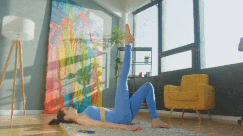 매트에 누운 후, 무릎을 당겨서 세우고, 오른쪽 다리를 공중으로 뻗습니다. 바닥과 90도 각도를 유지하세요. 그리고 엉덩이를 들어서 브릿지 자세를 만들고, 업다운 동작을 30초 진행합니다. 이번에는 왼쪽 다리를 들고, 30초 반복하세요.