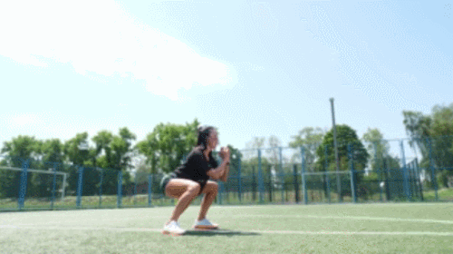 점프 동작과 함께 2가지 스쿼트 동작을 진행하면 되는데요. 다리를 넓게 벌리고, 스쿼트를 진행하세요. 그리고 일어서면서 점프하여 다리 사이의 간격을 좁힙니다. 그런 다음 다시 스쿼트를 진행하고, 점프 동작과 함께 다리를 넓게 벌려주세요. 1분간 반복합니다.