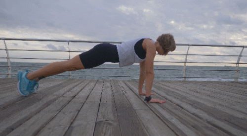 매트에 엎드린 상태에서 엉덩이를 들고, 다운도그 자세를 잡습니다. 그리고 팔꿈치를 구부리면서 몸을 바닥으로 낮췄다가 드는 동작을 반복하세요. 1분 동안 진행하세요. 코브라 자세로 마무리할 수 있습니다.