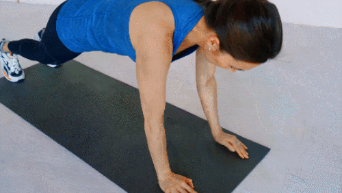 바닥에 몸을 붙이고 엎드려서 시작합니다. 그리고 손바닥으로 바닥을 밀면서 몸을 일으켜서 플랭크 기본자세를 만듭니다. 그런 다음 다리를 점프하여 당겼다가 다시 점프하여 되돌립니다. 이번에는 몸을 바닥으로 내리면서 원래 자세로 돌아오세요. 1분 동안 반복합니다.