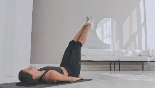 매트에 누운 상태로 등을 바닥에 붙이세요. 복부에 힘을 주면, 자세를 안정적으로 유지할 수 있습니다. 그리고 다리를 들고, 발끝은 뻗습니다. 그런 다음 다리를 돌려주세요. 원을 그리는 것처럼 움직입니다. 1분간 반복하세요.