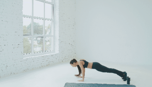 바닥에 손을 대고 엎드려서 시작합니다. 팔꿈치를 펴고, 시선은 바닥을 향합니다. 그리고 왼쪽 다리를 당겼다가 되돌리는 동시에 오른쪽 다리를 당겨줍니다. 다리를 번갈아 당겨주면서 1분 동안 빠르게 운동하세요.