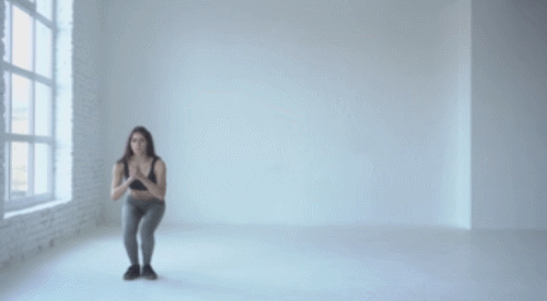 스쿼트 자세로 좌우로 움직이는 동작을 진행할 수 있는데요. 스쿼트 자세를 만들고, 왼쪽 다리를 왼쪽으로 이동하면서 운동하고, 오른쪽 다리로 반복합니다. 1분간 좌우로 진행하세요.