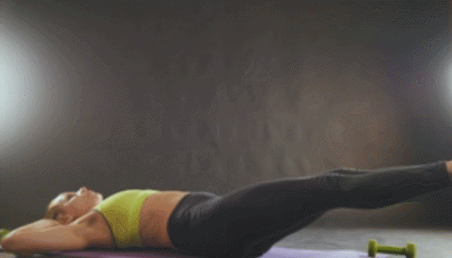 매트에 누운 상태에서 손은 머리 옆으로 보냅니다. 그리고 다리는 공중으로 띄우세요. 그런 다음 상체와 하체를 동시에 일으켜서 복부를 향해 접었다가 펴줍니다. 1분간 더블 크런치 동작을 진행하세요.