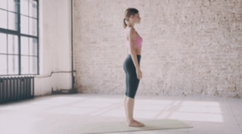 매트에 다리를 모으고 서서 시작하세요. 그리고 오른쪽 다리를 뒤로 뻗으면서 왼쪽 무릎을 구부립니다. 동시에 팔을 머리 위로 뻗으세요. 자세를 유지하면서 버틴 후, 돌아옵니다. 반대편 다리로 반복하세요. 1분간 운동합니다.
