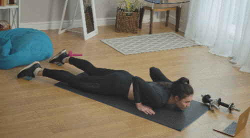 배를 매트에 대고 엎드려서 준비하세요. 그리고 팔을 앞으로 뻗습니다. 그런 다음 상체와 하체를 동시에 공중으로 들어주세요. 슈퍼맨 자세로 버텼다가 원래 자세로 돌아옵니다. 1분 동안 반복하면서 진행하세요.