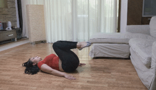 매트에 등을 대고 누운 상태에서 팔을 바닥으로 누르면서 다리를 공중으로 들어주세요. 그리고 무릎을 최대한 당겼다가 완전히 펴주는 동작을 반복하면 되는데요. 복부에 힘을 주고 누르면서 다리를 1분 동안 움직입니다.