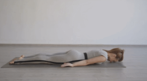 배를 대고 엎드린 상태에서 준비합니다. 팔은 뒤로 뻗어주세요. 그리고 상체와 하체를 공중으로 동시에 들면서 최대한 버텼다가 원래 자세로 돌아옵니다. 1분 동안 반복하여 진행하면서 몸을 확장시킵니다.
