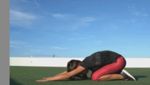 매트에 엎드려서 차일드 자세를 만드세요. 이마는 바닥에 대고, 상체를 최대한 늘여줍니다. 그리고 상체를 일으키고, 엉덩이를 내리는 코브라 자세로 전환합니다. 1분 동안 2가지 동작을 진행하세요.