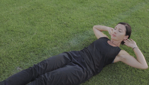 매트에 누운 후, 손을 머리 옆으로 옮기세요. 그리고 무릎을 구부리면서 다리를 당기고, 상체를 일으켜서 복부를 압박합니다. 1분 동안 더블 크런치 동작을 진행하세요.