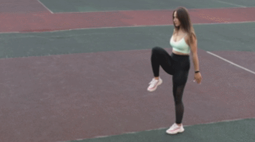 다리를 모으고 선 상태에서 준비합니다. 그리고 오른쪽 다리를 뒤로 뻗으면서 런지 동작을 진행하고, 앞으로 당기면서 무릎을 올려주세요. 30초 동안 진행 후, 왼쪽 다리를 뒤로 뻗었다가 당기는 동작으로 30초 진행합니다.