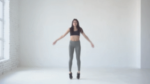 다리를 모으고 바닥에 서서 정면을 향합니다. 그리고 점프와 함께 다리를 넓게 벌리고, 손을 머리 위로 올려서 손바닥을 마주칩니다. 다시 점프와 함께 원래 자세로 돌아오면, 1회가 완료됩니다. 1분 동안 진행하세요.
