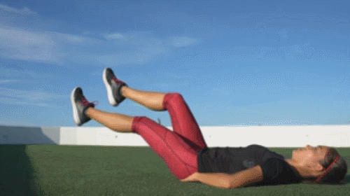 매트에 엉덩이를 대고 앉은 후, 손바닥으로 지탱하고, 상체를 뒤로 기울입니다. 그리고 다리를 바닥에서 떨어뜨리고, 무릎을 구부리세요. 상체를 일으키면서 다리를 당겼다가 펴는 운동을 진행합니다. 1분간 반복하세요.