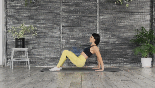 매트에 앉아서 다리 사이에 수건이나 볼을 위치하세요. 그리고 손과 발을 바닥으로 누르면서 엉덩이를 들고, 테이블 모양처럼 자세를 만들었다가 돌아옵니다. 1분 동안 엉덩이를 움직이세요. 다리에 힘을 주면서 자세를 유지합니다.