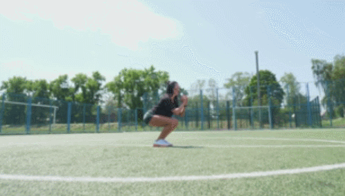 다리를 넓게 벌리고 서서 스쿼트 동작을 진행합니다. 그리고 일어서면서 점프하여 다리를 모으고, 스쿼트 동작을 반복하세요. 다시 점프하여 다리를 넓게 벌리고, 스쿼트 동작으로 이어갑니다. 1분간 반복하세요.
