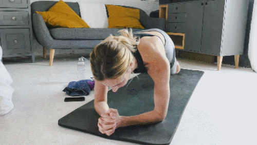 팔뚝을 대고 엎드려서 엉덩이를 공중으로 띄웁니다. 팔꿈치 플랭크 자세를 만드세요. 몸을 최대한 곧게 편 상태에서 버티면 되는데요. 1분을 목표로 진행합니다. 점차 시간을 늘리면서 운동하세요.