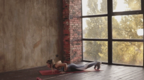 매트에 배를 대고 엎드린 상태에서 손을 머리 옆으로 옮깁니다. 그리고 다리를 어깨너비로 벌리고 바닥을 지탱합니다. 그런 다음 상체를 공중으로 최대한 들었다가 내리는 동작을 1분 동안 반복합니다.